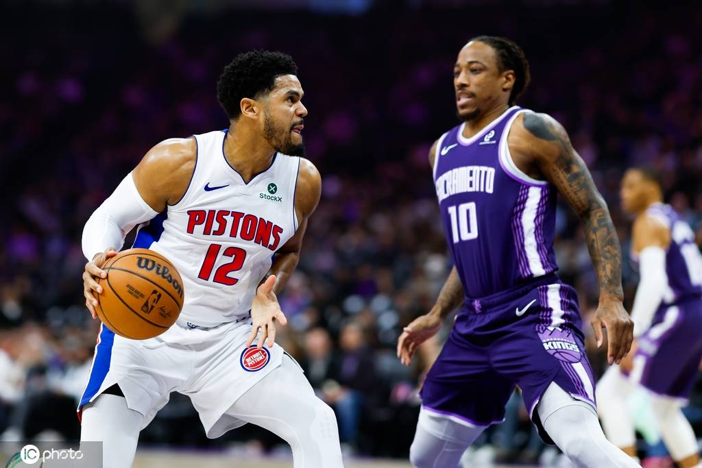 比赛一开始,国王通过强势进攻迅速取得了8-5的领先。然而,活塞随后展现出强大的反扑能力,不仅成功抹平比分,还将领先优势扩大到13分。随着比赛的进行,国王逐渐找到节奏,逐步缩小分差。在本节中,德罗赞表现出色,独得11分,而活塞的坎宁安同样不甘示弱,贡献了10分,其中包括两记三分球。第一节结束,活塞以37-24领先国王。